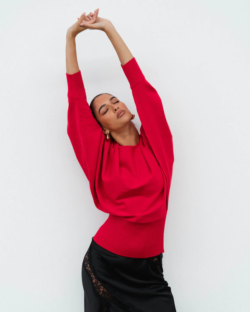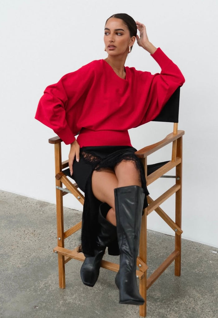 A bold twist on a wardrobe essential, the Alexis Knit in Red brings warmth and style to any outfit. Wear it with classic denim and ankle boots for a casual statement or layer it over a slip dress for a fashion-forward edge. Get yours before it’s gone!