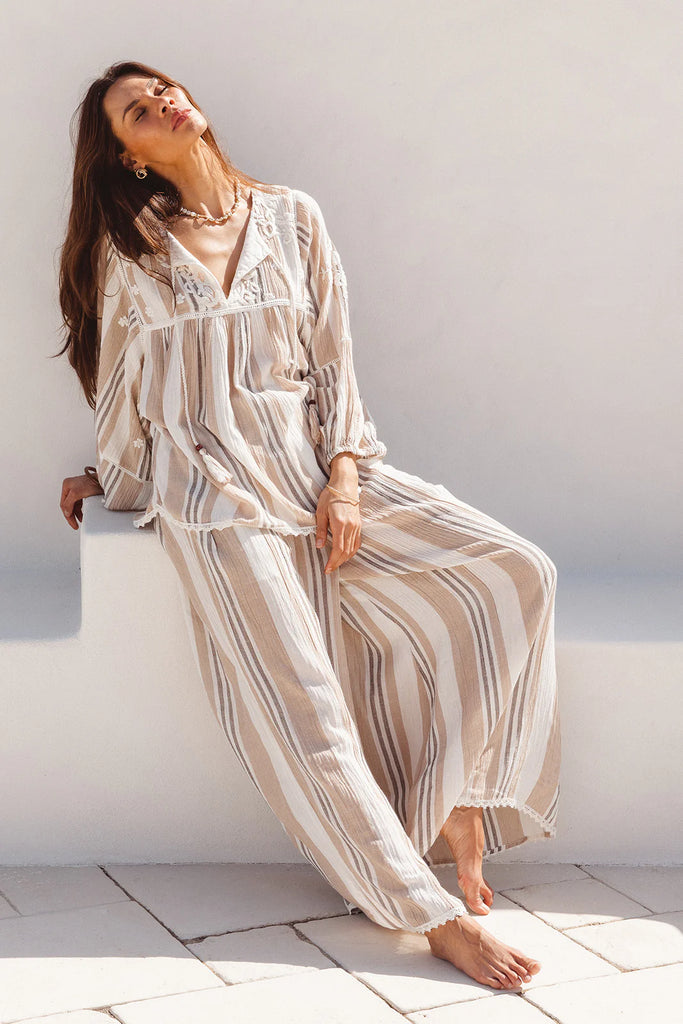 The natural stripe design is timeless and versatile, whether you style it with denim for casual days or pair it perfectly with the matching Palmas Pants for a head-turning co-ord look. Lightweight and breathable, it’s ideal for transitioning between seasons while keeping your look polished and free-spirited.