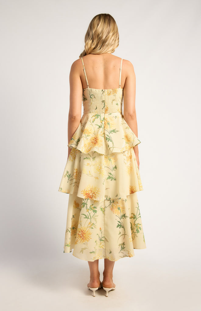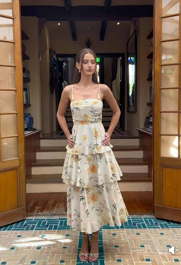 Bask in the beauty of sun-soaked days with the California Midi Dress. Crafted from a soft faux linen fabrication and adorned with a delicate wispy floral print, this dress captures relaxed coastal elegance. Featuring a straight neckline and adjustable singlet straps detailed with statement marble beads, it blends modern flair with feminine grace.
