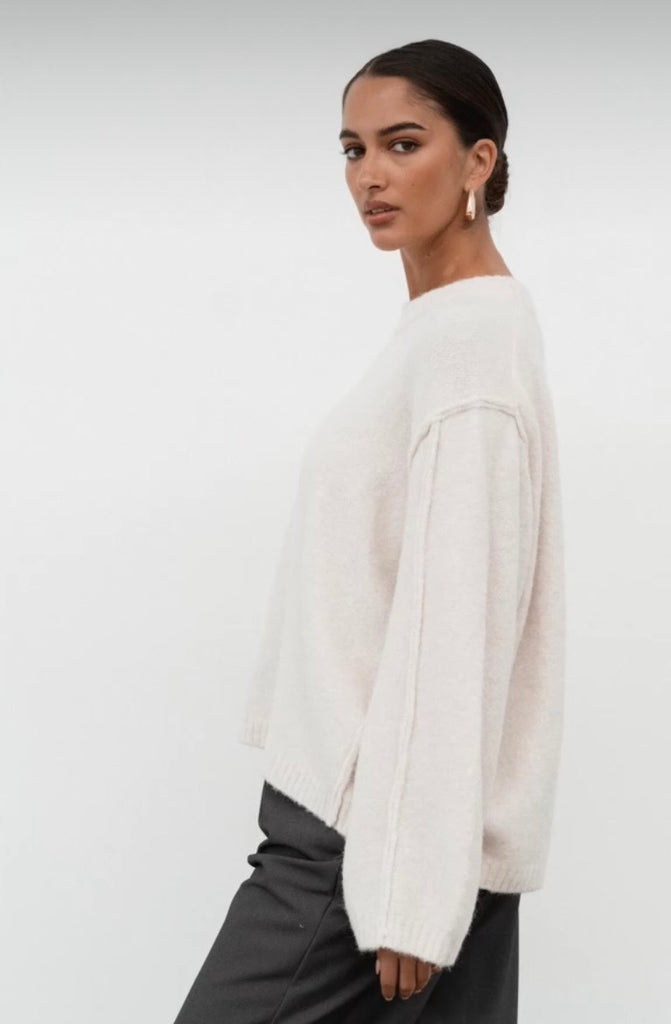 The softest knit you’ll ever own. The Cloud Knit wraps you in warmth with its buttery-soft feel and relaxed silhouette. In a timeless cream hue, it’s the ultimate throw-on-and-go piece for cooler days.