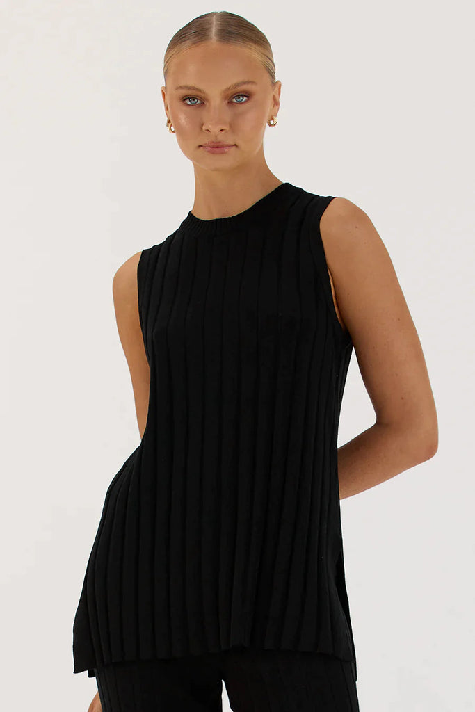 Featuring a classic black finish with a subtle ribbed texture, the Cruiser Knit Top is detailed with side splits for ease of movement and a flattering drape. It’s the perfect balance of relaxed and refined, making it an easy go-to for everyday wear or styled up for a more elevated look.