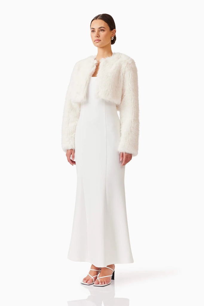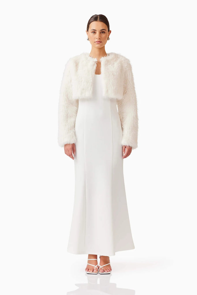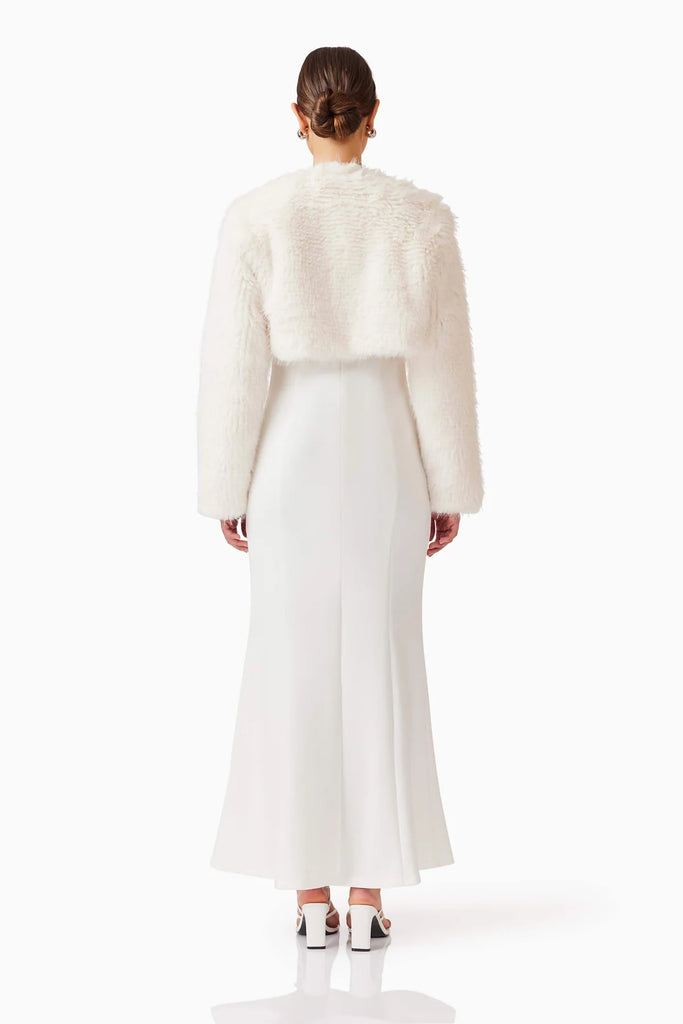 Perfect for adding a touch of refinement to your wardrobe, the Desiree Cropped Jacket in White is a versatile piece that can be worn year-round, transitioning from day to night with ease.