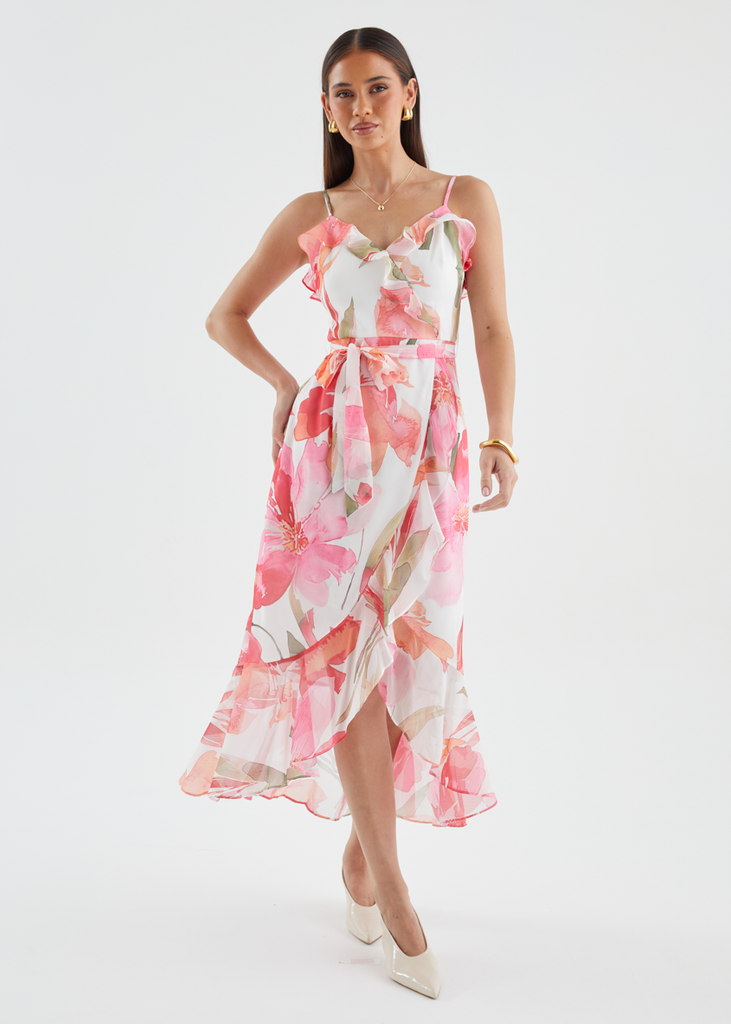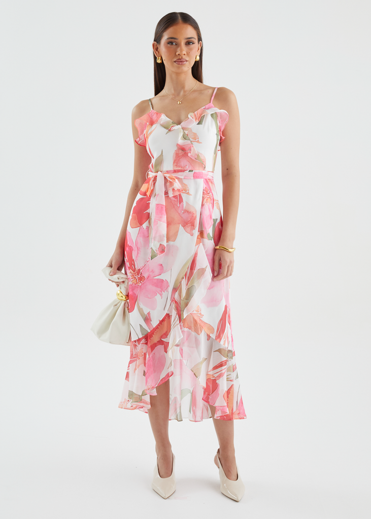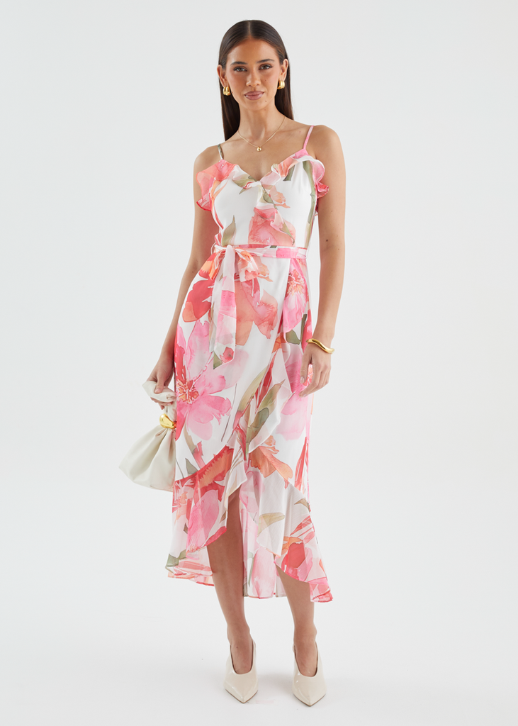 Embrace effortless femininity with the Eliza Midi Dress. Soft florals and a relaxed silhouette make it your go-to for garden parties, brunches, or weekend getaways. Style it with wedges and a raffia bag for a romantic touch, or keep it casual with flats and a crossbody for everyday charm.